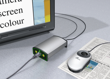 The TVi Color is a hand-held, electronic magnifier that is plugged into your TV to magnify reading material. The camera is housed in the mouse-like device and can be used anywhere there is electricity.